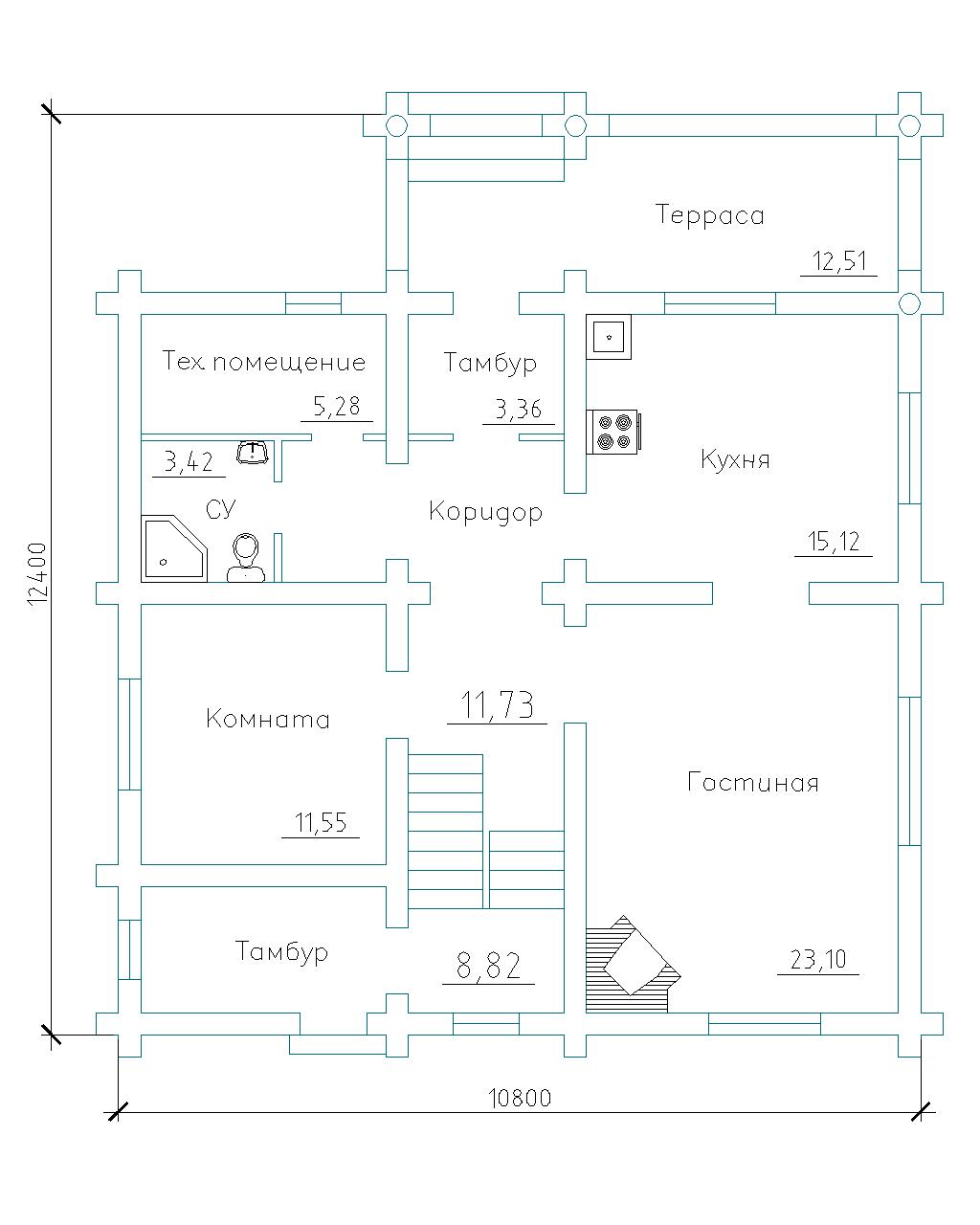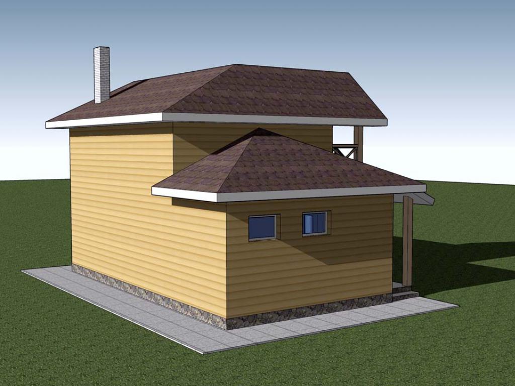 Спроектирован и построен в 2012 году специалистами компании «Сибирская Усадьба» в п. Пимия, Красноярский край. Конструктор сруба изготовлен на собственной производственной базе компании. Общая площадь дома 76,92 м2.
