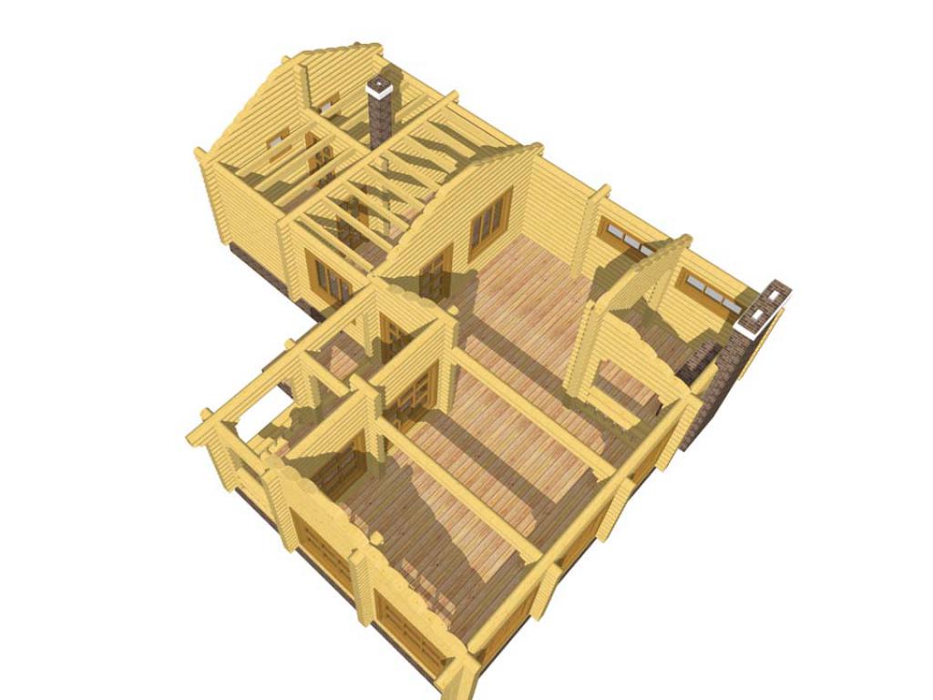 Спроектирован и построен в 2013 году специалистами компании «Сибирская Усадьба» в д. Медведа, Красноярский край. Конструктор сруба изготовлен на собственной производственной базе компании. Общая площадь 65,24 м2.