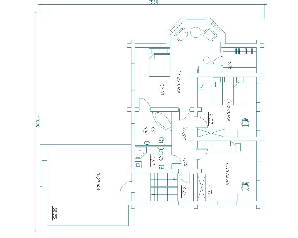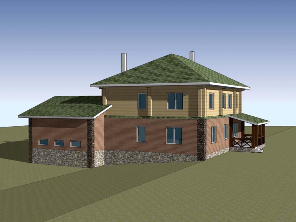 Спроектирован и построен в 2014 году специалистами компании «Сибирская Усадьба» в п. Манский, Красноярский край. Конструктор сруба изготовлен на собственной производственной базе компании. Общая площадь 242,80 м2.